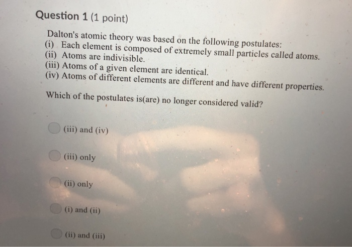 Solved Question 1 1 Point Dalton S Atomic Theory Was Based Chegg Com